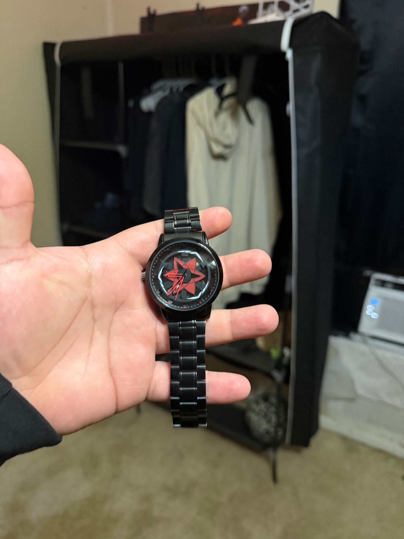 Received this Sharingan spinning watch as a gift and was instantly hooked. The spin is mesmerizing, quality feels top-tier, and it grabs attention everywhere. Hands down the coolest watch I own, will definitely be getting another one.